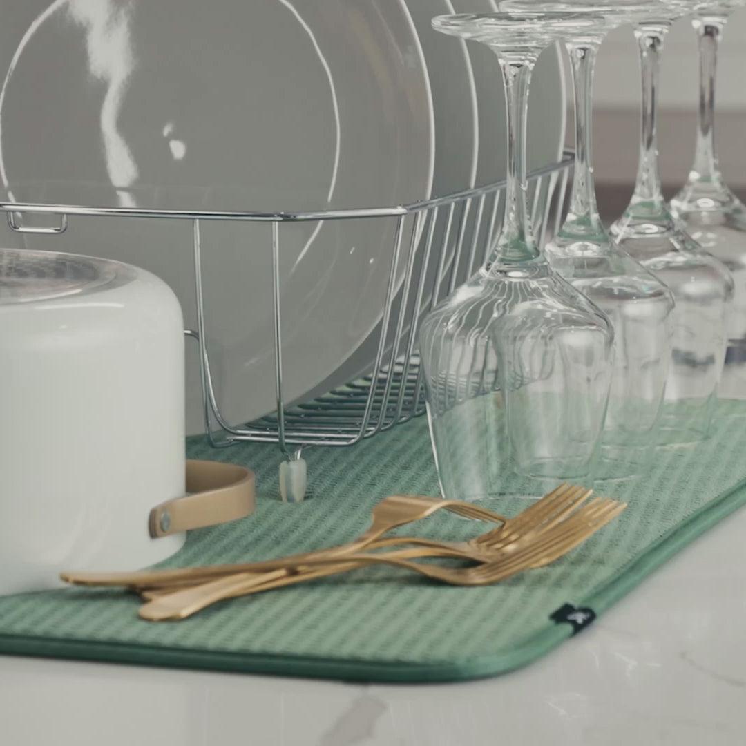 Our XL dish drying mat is super spacious for larger cookware, dish racks, and even small appliances!