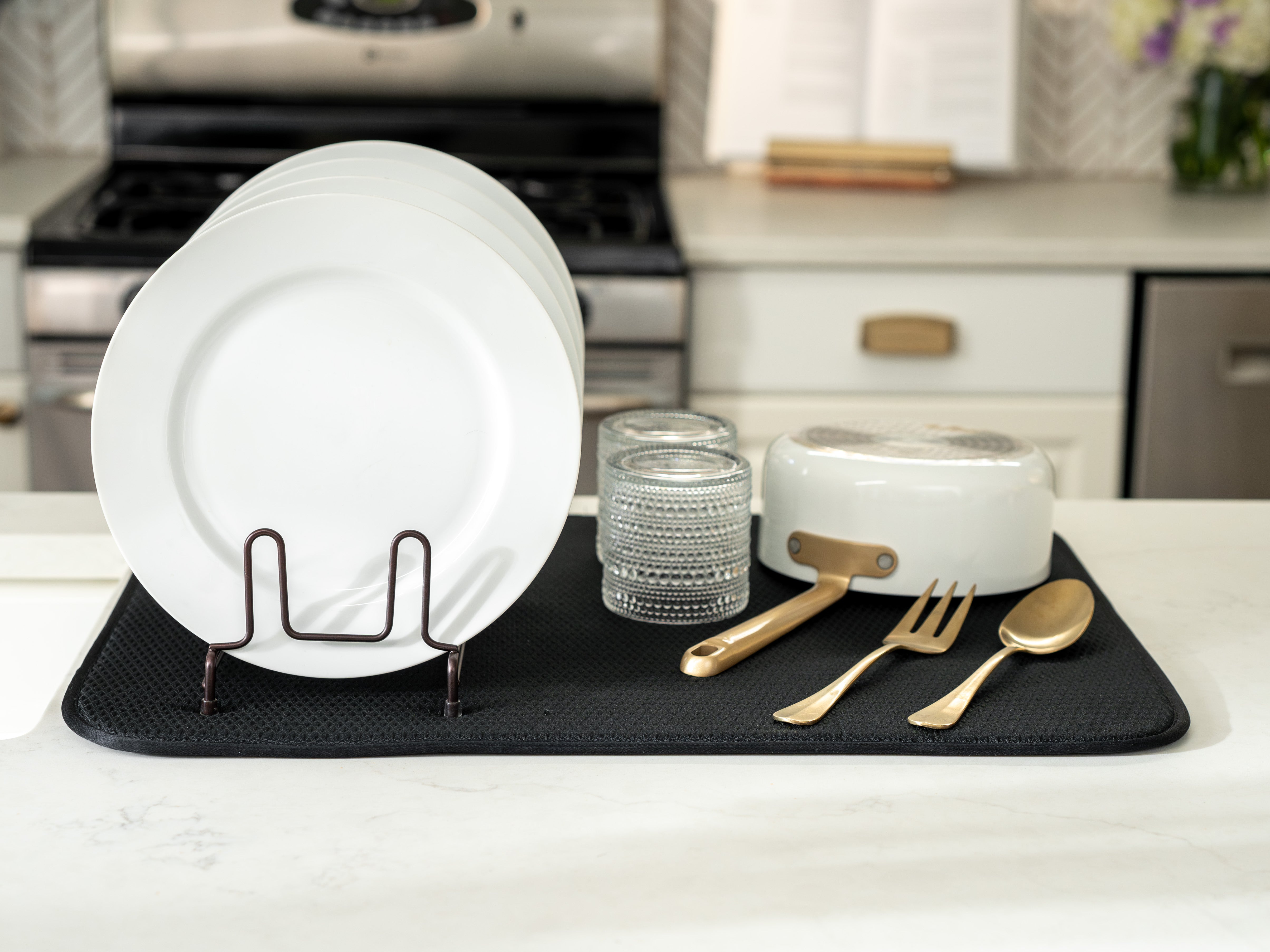 Our XL dish drying mat is super spacious for larger cookware, dish racks, and even small appliances!