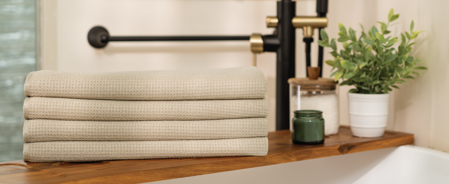 Combining high-end satin trim, a sewn-in hang loop, and super absorbent microfiber, the honeycomb bath towel offers both style and functionality.
