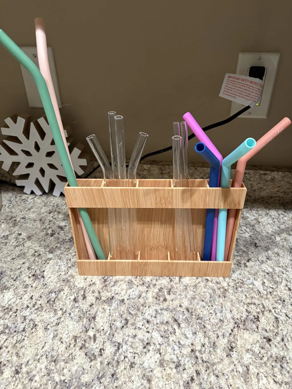 Upgrade your kitchen organization with this durable plastic holder that offers a compact straw storage solution. The best way to store silicone straws, metal straws or other reusable straws, this space-saving design includes five divided compartments that keep reusable straws neatly separated, visible, and easy to access.