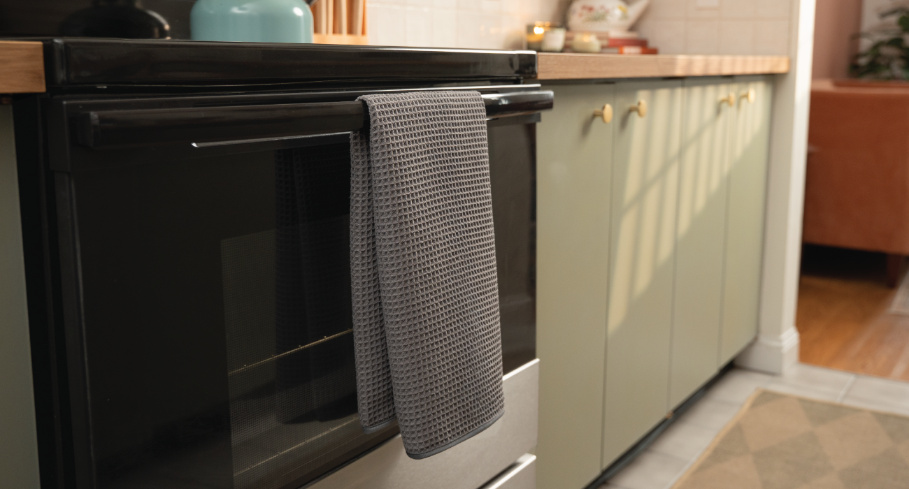 The waffle pattern improves airflow, helping the towel dry faster than traditional hand towels so it stays fresh.